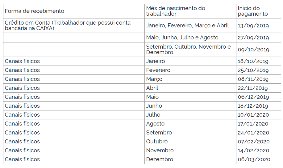 Assim, sem prejuízo das demais situações de movimentação previstas no artigo 20 da Lei nº 8.036/1990, o trabalhador poderá efetuar um saque, no valor de até R$ 500,00, por conta vinculada de sua titularidade, observado o saldo existente na data de processamento do débito, observando o cronograma de atendimento, que tem por critério o mês do nascimento do trabalhador: